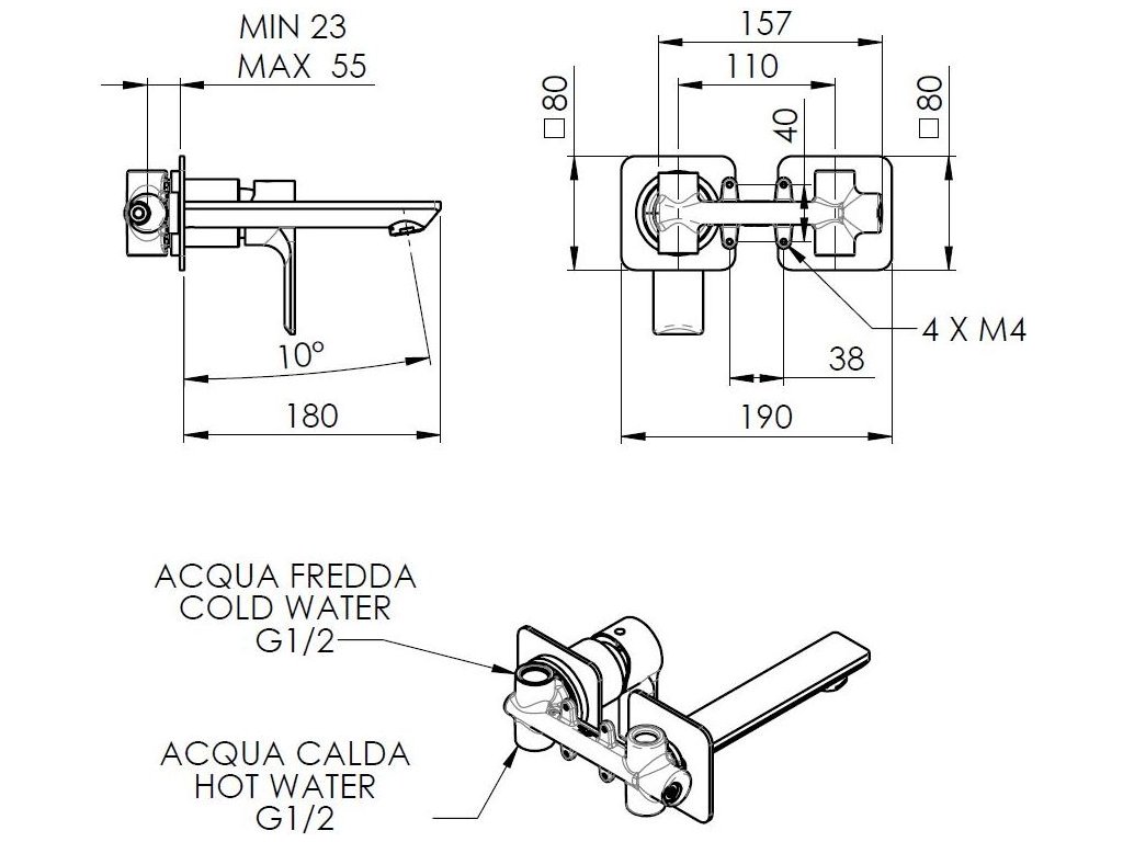 Sapho PAX podomítková dvouprvková umyvadlová baterie, černá mat XA08/15