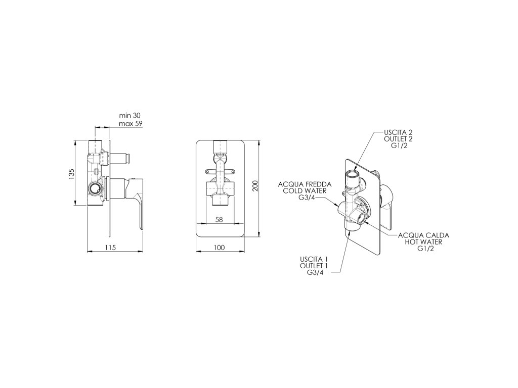 Sapho PAX podomítková sprchová baterie, 2 výstupy, chrom XA42