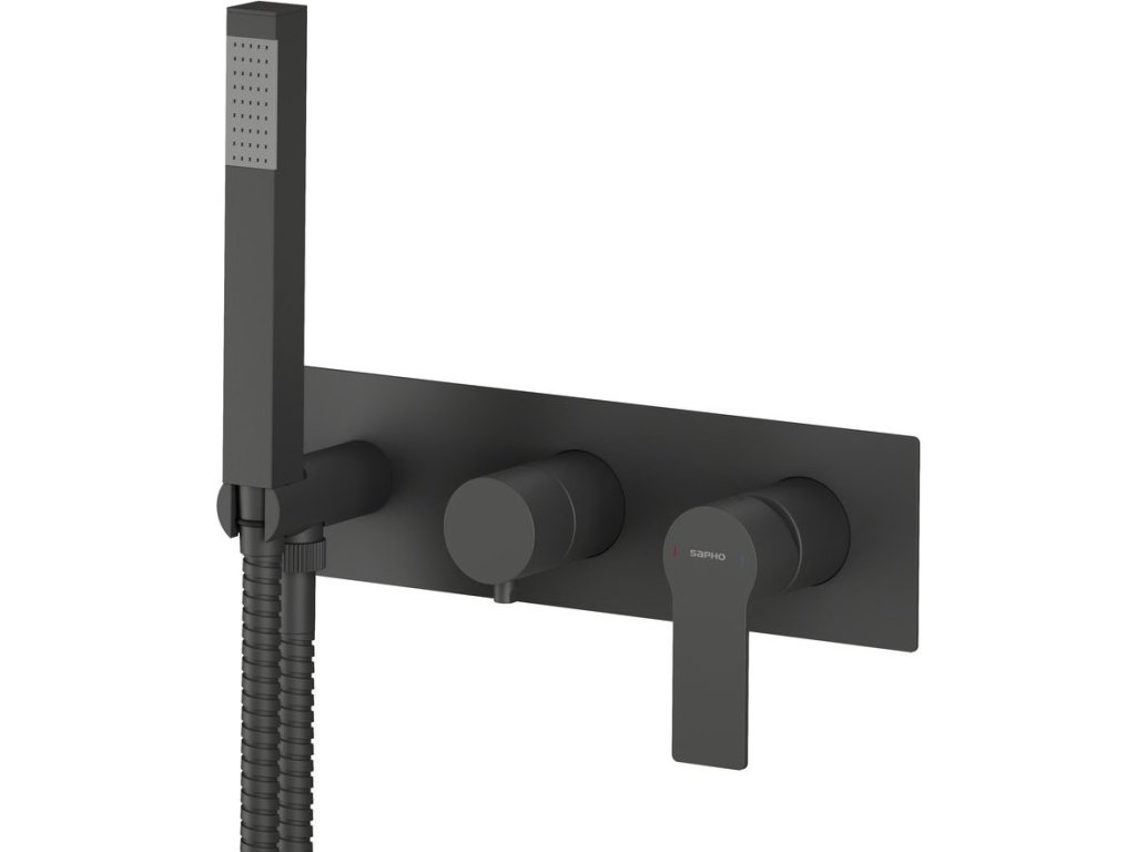 Sapho PAX podomítková sprchová/vanová baterie s ruční sprchou, 3 výstupy, černá mat XA53/15