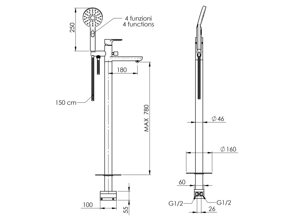 Sapho PAX vanová baterie s připojením do podlahy, bílá mat XA21/14