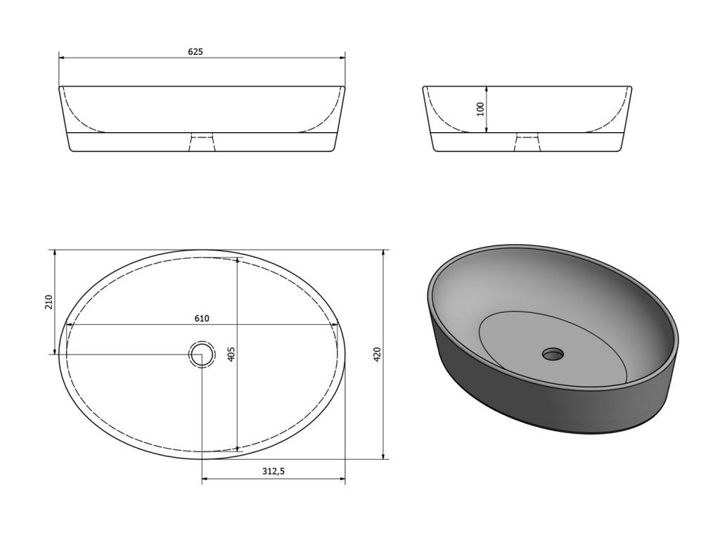 Sapho PERA keramické umyvadlo na desku, 62, 5x42 cm, bílá AR457