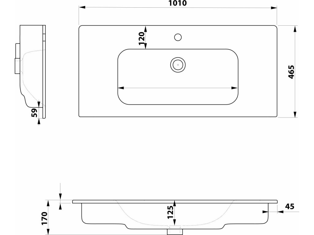 Sapho PIEDRA keramické umyvadlo nábytkové 101x46, 5cm, bílá 43101
