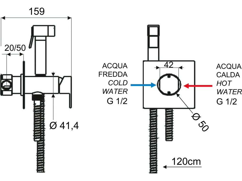 Sapho Podomítková bidetová baterie se Stop sprškou, hranatá, chrom 1103-08