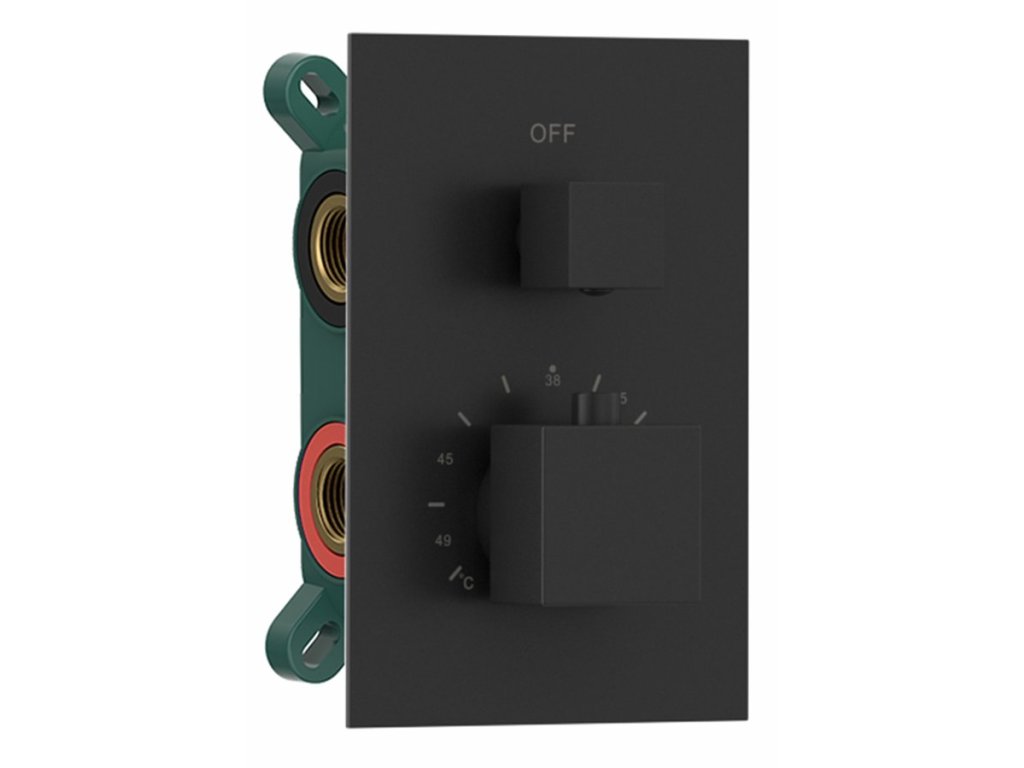 Termostatická nástěnná sprchová baterie 150 mm, s nastavitelnou teleskopickou tyčí, nerezovou sprchovou hadicí 150 cm, ruční a talířovou hranatou sprchou, 220x220 mm, nerez