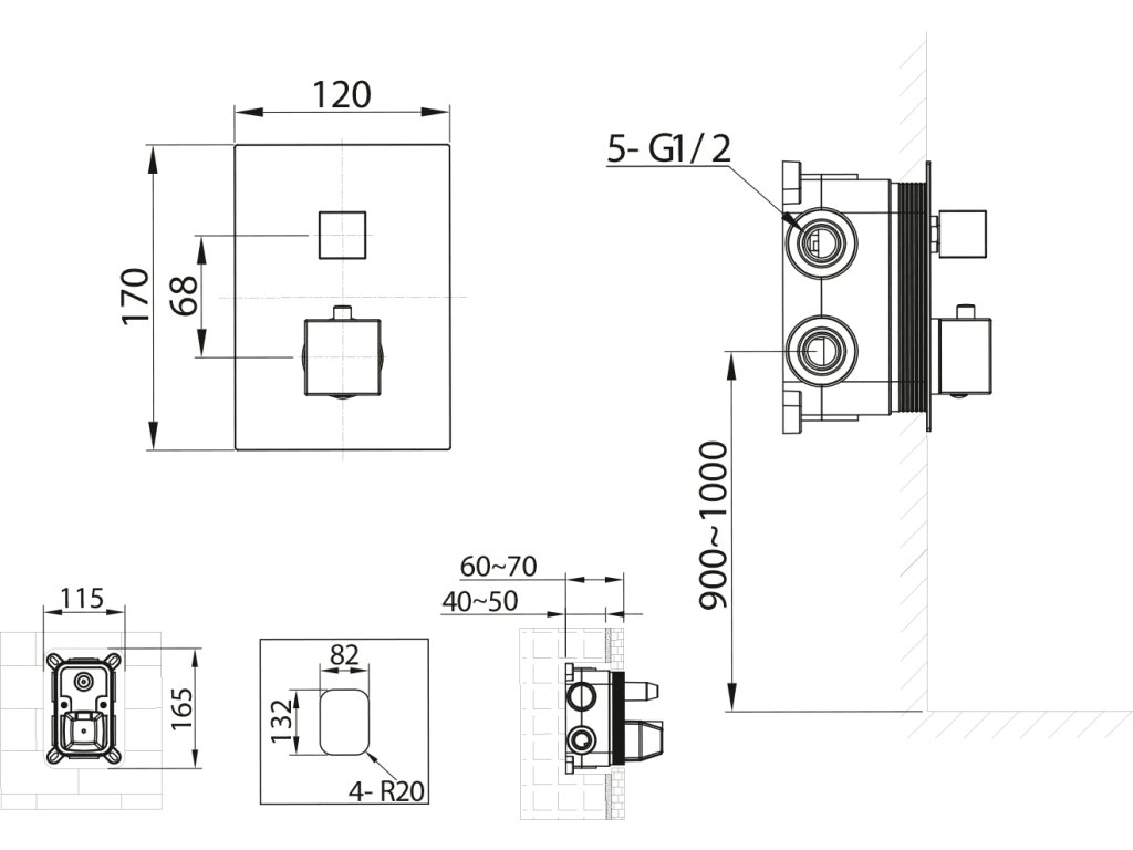 Sapho Podomítková sprchová termostatická baterie, box, 3 výstupy, chrom 1102-33