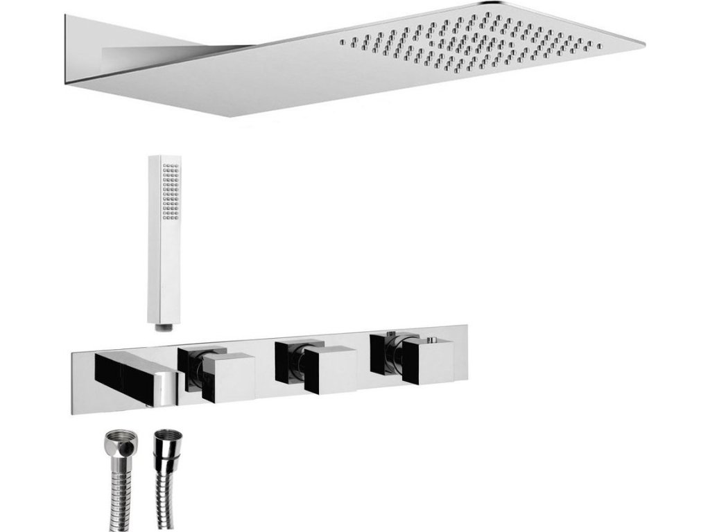 Sapho Podomítkový sprchový set s termostatickou baterií a držákem ruční sprchy, 2 výstupy, hranatá, chrom MB453-01