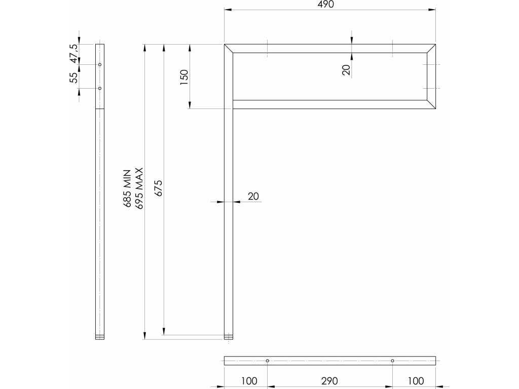 Sapho Podpěrná konzole 490x690x20mm, lakovaná ocel, černá mat 30362