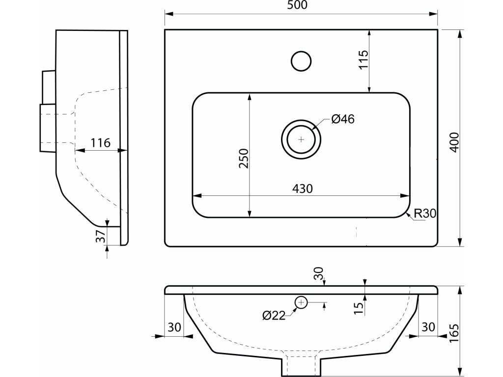 Sapho PRACTICO keramické umyvadlo nábytkové 50x40cm, bílá 44050