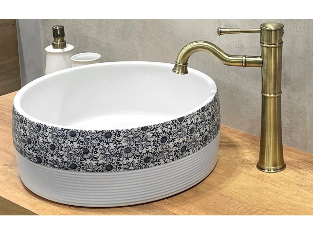 Sapho PRIORI keramické umyvadlo na desku, Ø 41 cm, bílá s modrým vzorem PI027