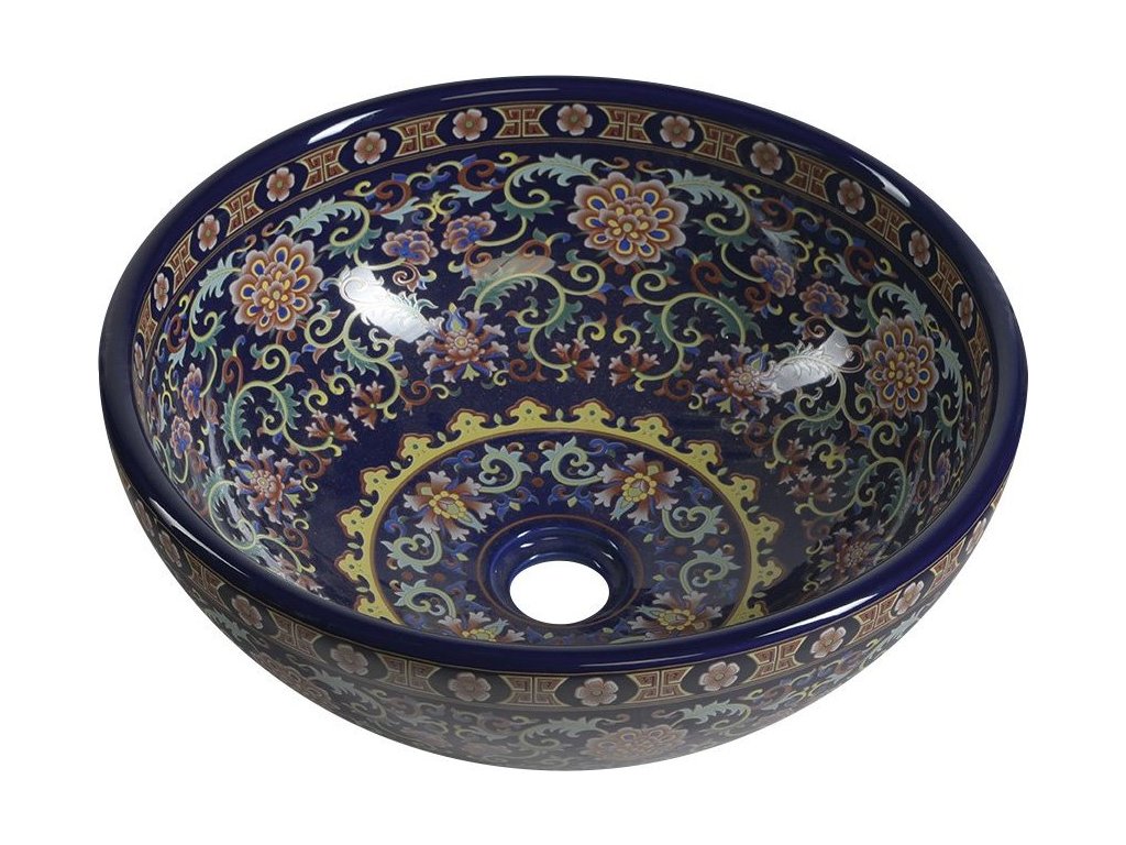 Sapho PRIORI keramické umyvadlo na desku, Ø 41 cm, fialová s ornamenty PI022