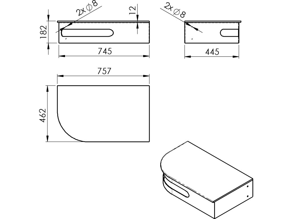 Sapho PULSE rohový stolek s umyvadlem 755x455mm, pravý, nerez mat BM760-0101-01