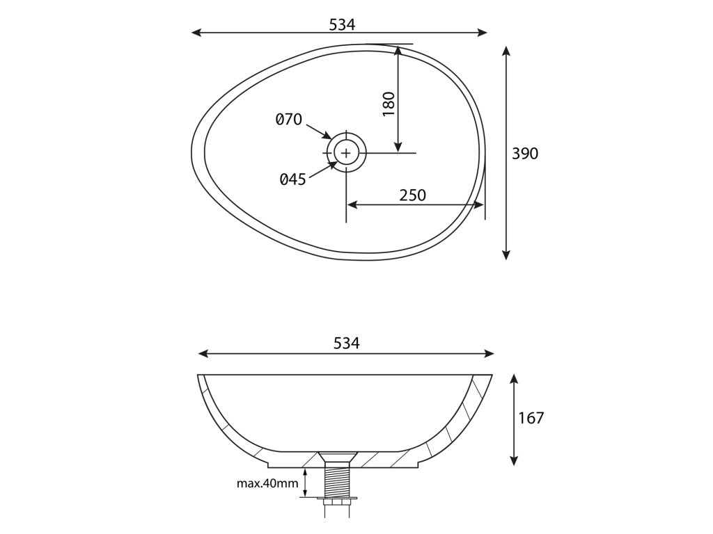 Sapho PUNC betonové umyvadlo na desku, včetně výpusti, 53x39cm, bílý pískovec BH7000