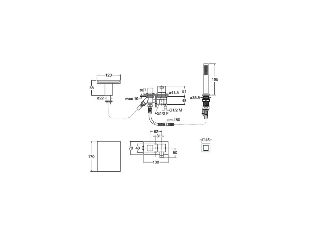 Systém výsuvu hadice pro montáž na hranu vany. Ruční sprcha se vratnou pružinou navrací zpět a zároveň je hadice osušena. Systém navíc pomocí drenáže zamezuje zatékání vody pod vanu.