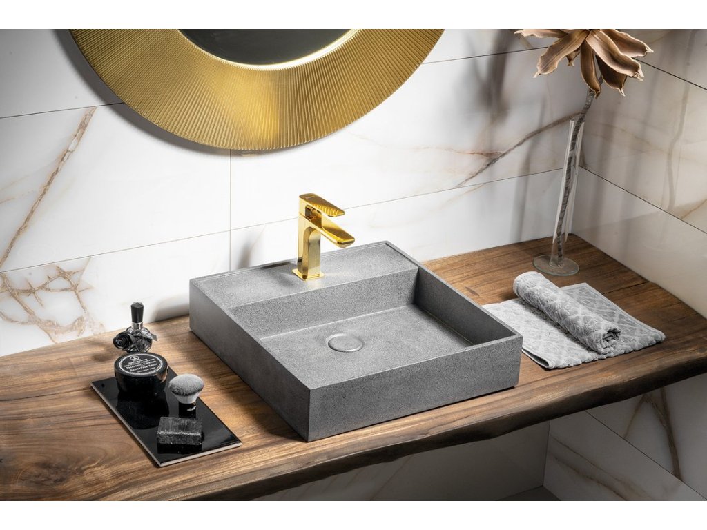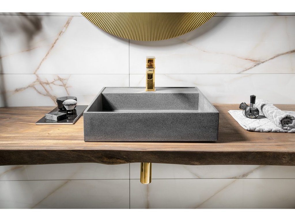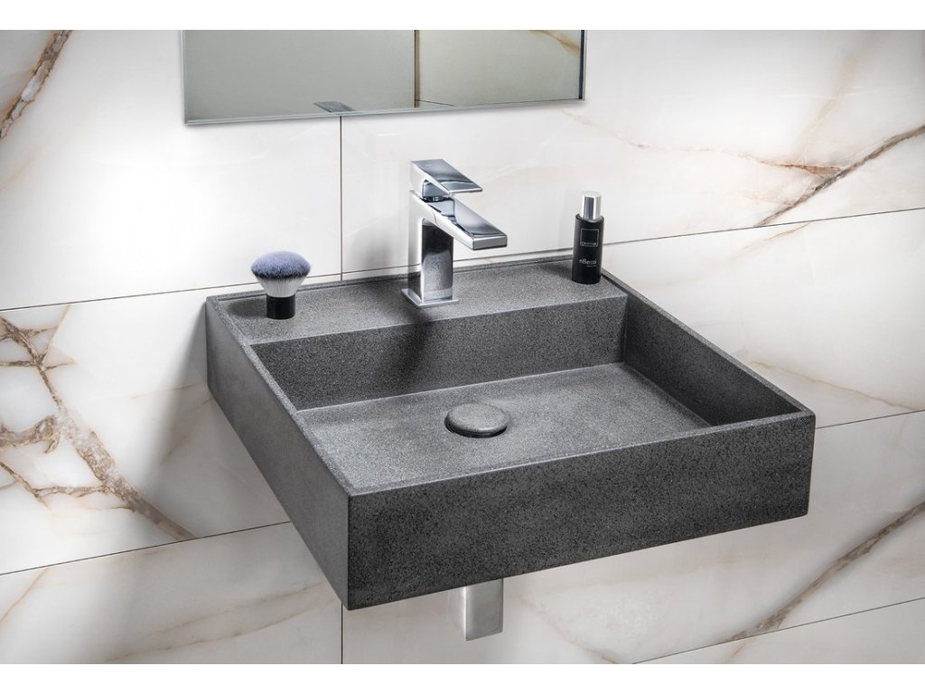 Sapho QUADRADO betonové umyvadlo včetně výpusti, 46x46cm, černý granit AR468
