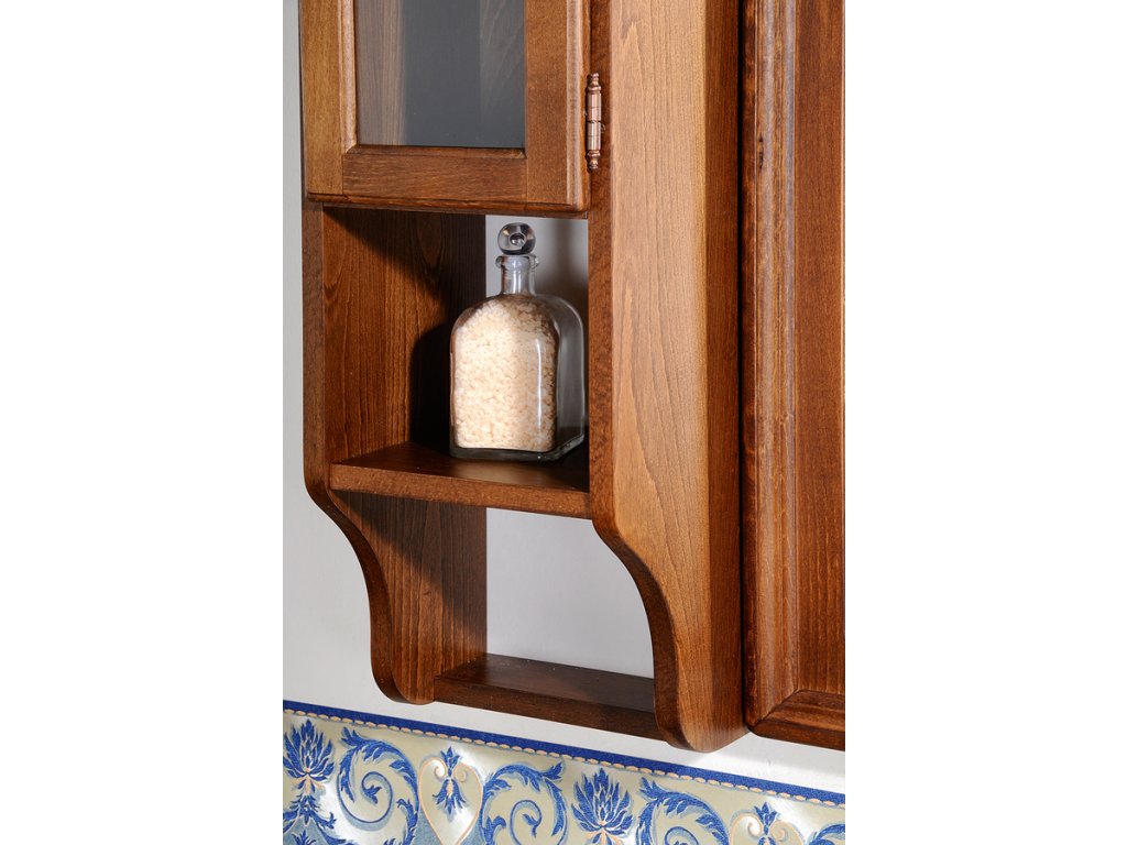 Skříňky jsou napuštěny 2 vrstvami oleje - barevným pro sjednocení barvy dřeva a bezbarvým pro zvýšenou odolnost.