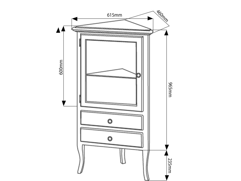 - 1x prosklená dvířka, uvnitř skleněná police