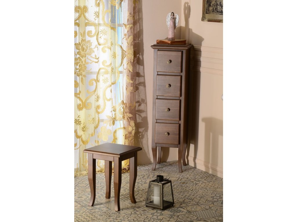 V tmavém provedení je nábytek vyroben z masivního bukového dřeva, ve světlém provedení ze smrkového masivu.