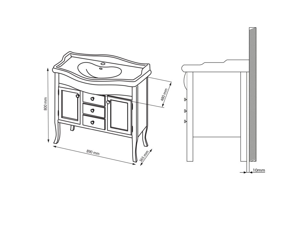 - Z důvodu instalace sifonu je horní zásuvka imitace = pouze pevné čelo