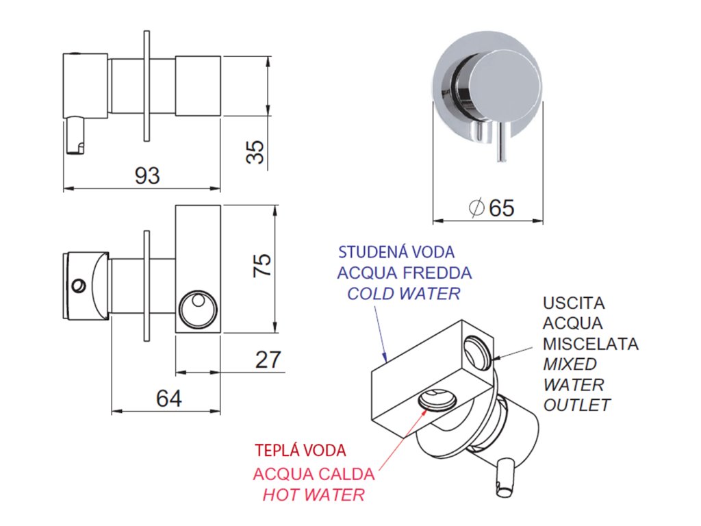 Sapho RHAPSODY podomítková bidetová baterie se Stop sprškou, chrom 5540-01