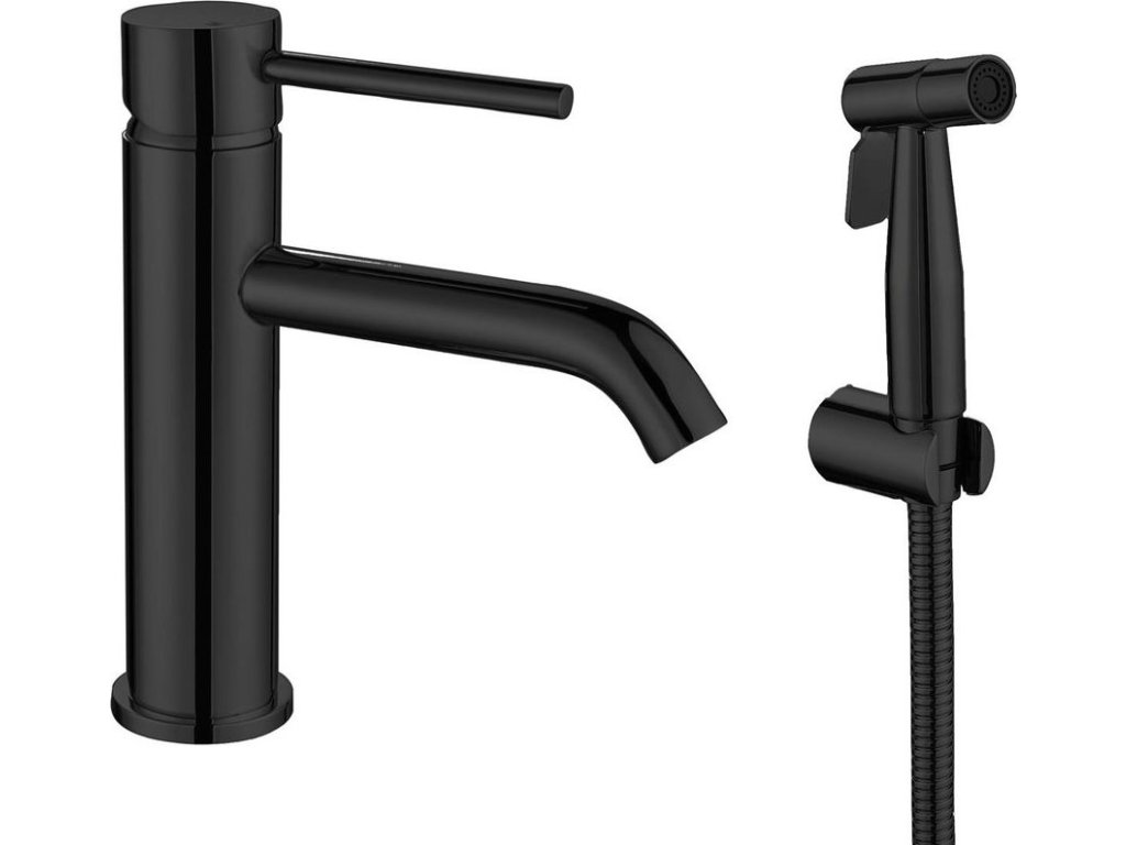 Sapho RHAPSODY stojánková umyvadlová baterie s bidetovou sprchou, černá 1209-08B