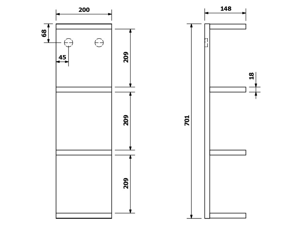 Sapho RIWA otevřená police 20x70x15cm, jilm bardini RIW200-0013