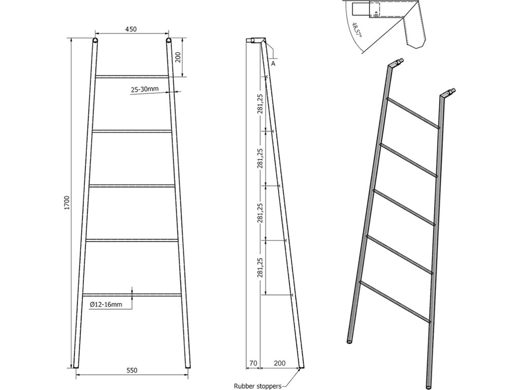 Sapho SEGA sušák ručníků na opření 550x1700x70mm, černá mat SE104