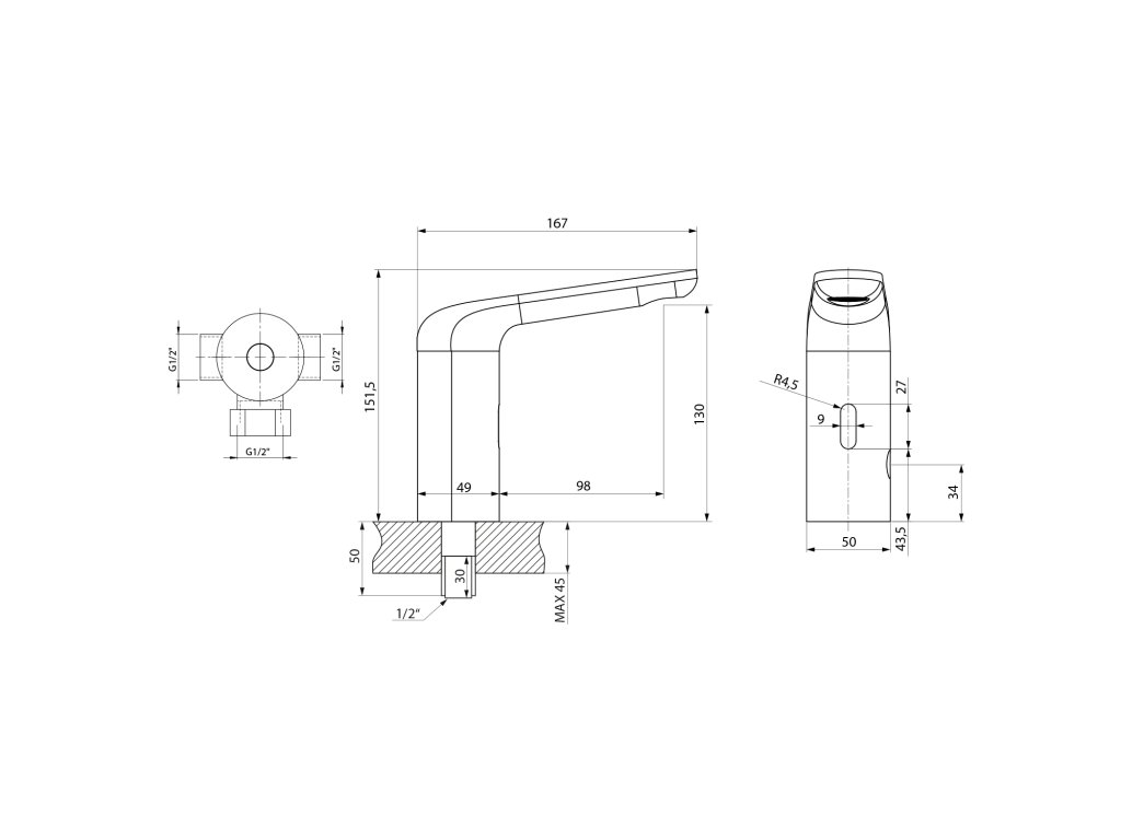 Sapho Senzorová stojánková baterie 6V DC (4xAA), chrom PS203
