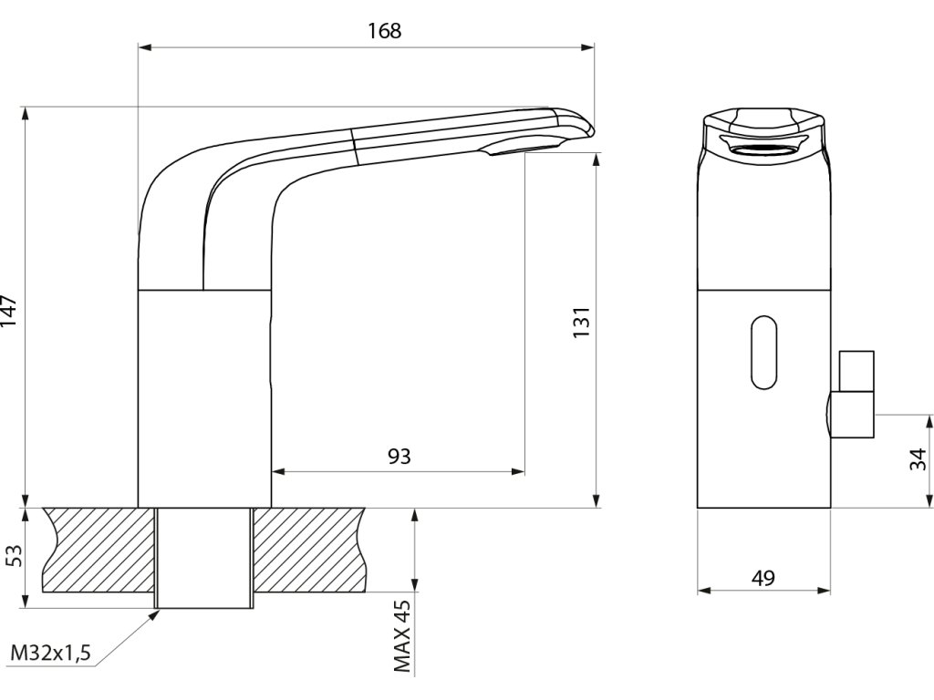 Sapho Senzorová stojánková baterie s regulací teploty, 6V DC (4xAA), chrom PS204
