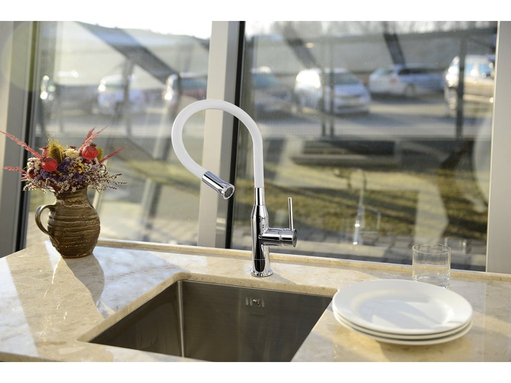Sapho SILI stojánková dřezová baterie, flexibilní ramínko, bílá/chrom SR481