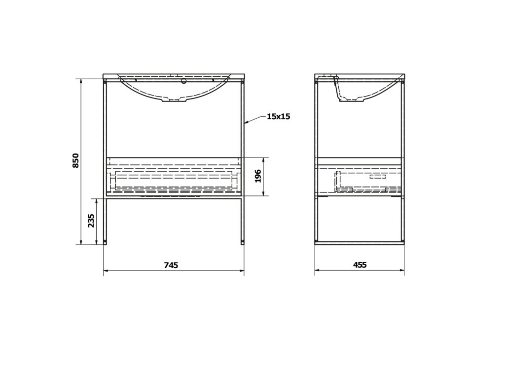 Sapho SKA konzole pod umyvadlo se zásuvkou 750x850x460mm, černá mat/bílá lesk SKA602
