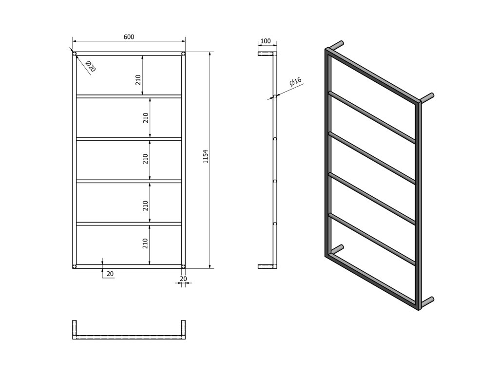 Sapho SKA nástěnný sušák ručníků 600x1150x100mm, černá mat SKA502