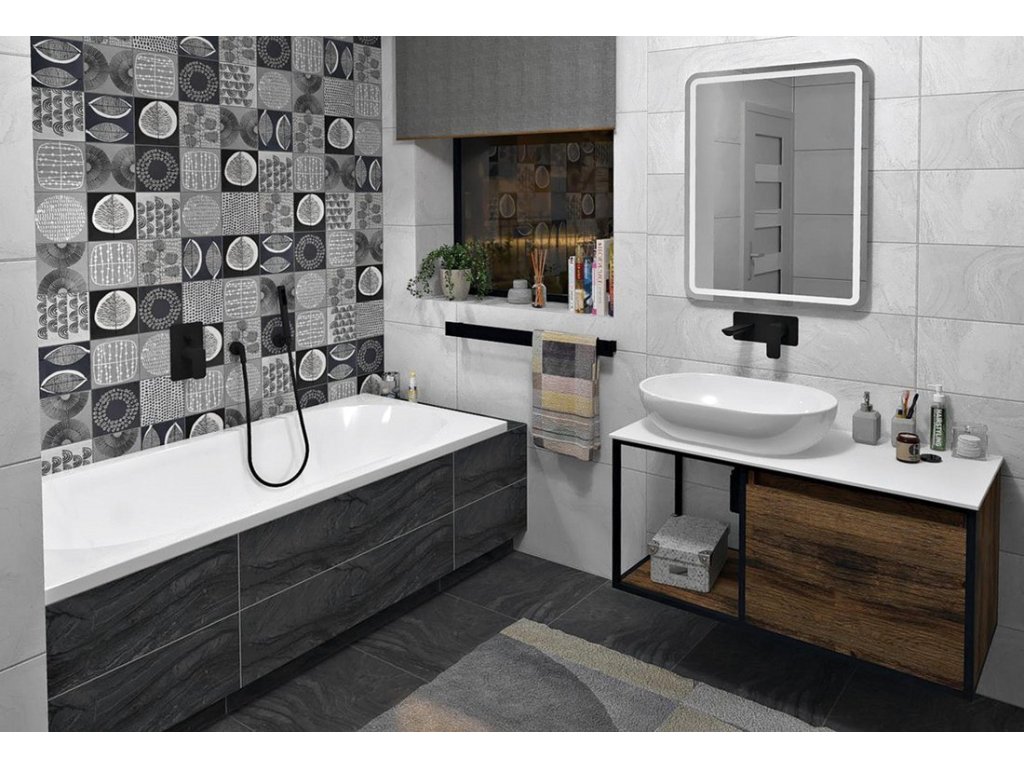 Konstrukce ze série SKARA jsou vhodné do koupelen zařizovaných v moderním i industriálním stylu. Skvěle je doplní vysoká skříňka SKARA ve stejném dekoru nebo skříňky a zrcadla TREOS s rámem v dřevěném dekoru. Perfektní je i kombinace s podsvíceným zrcadlem SORT v černém hliníkovém rámu.