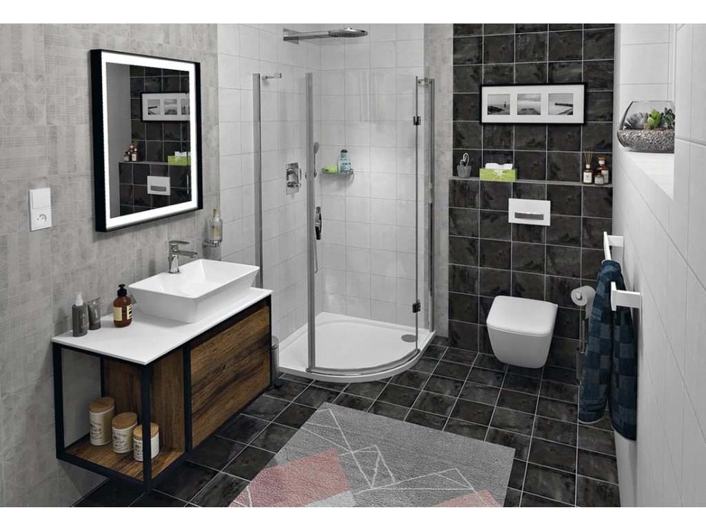 Konstrukce ze série SKARA jsou vhodné do koupelen zařizovaných v moderním i industriálním stylu. Skvěle je doplní vysoká skříňka SKARA ve stejném dekoru nebo skříňky a zrcadla TREOS s rámem v dřevěném dekoru. Perfektní je i kombinace s podsvíceným zrcadlem SORT v černém hliníkovém rámu.