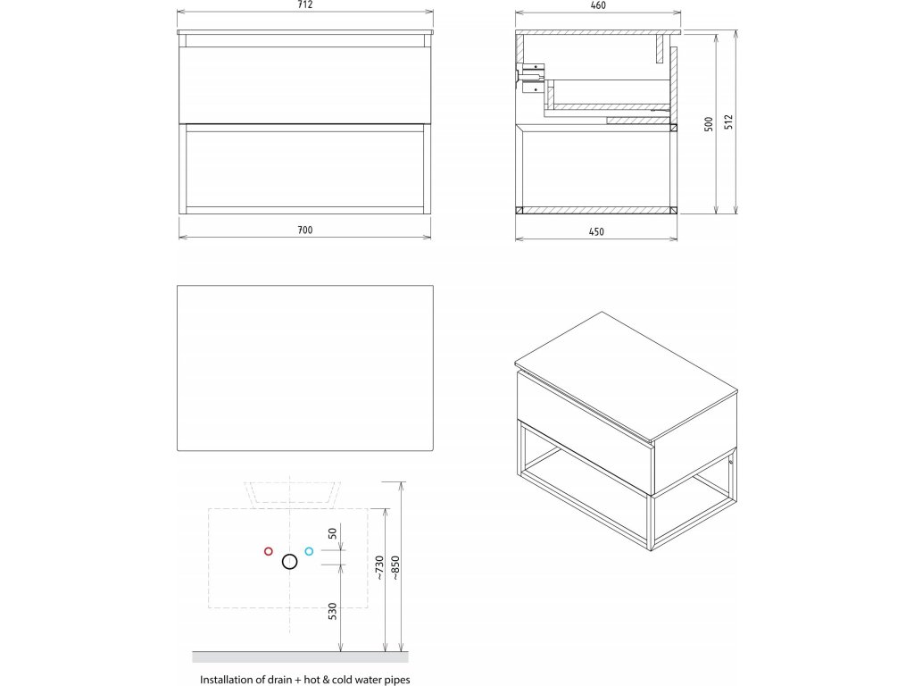 Závěsné konstrukce v šířkách 60, 80 a 100 cm jsou jsou určeny pro umyvadlo TWIG z litého mramoru v bílé barvě. V nabídce jsou i konstrukce určené výhradně k instalaci s rockstone deskou v šířkách 70 až 100 cm.