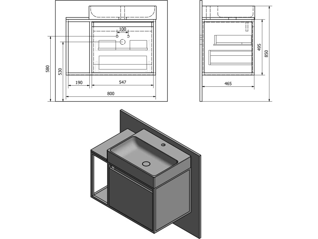 - Na skříňku lze instalovat umyvadlo nebo rockstone desku SKARA (nutno dokoupit dle výběru).