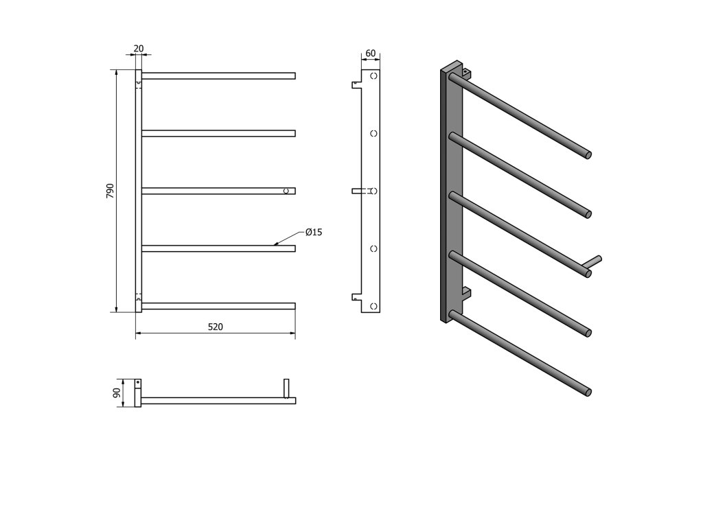 Sapho SLICE sušák osušky, 520x790mm, černá mat SN883