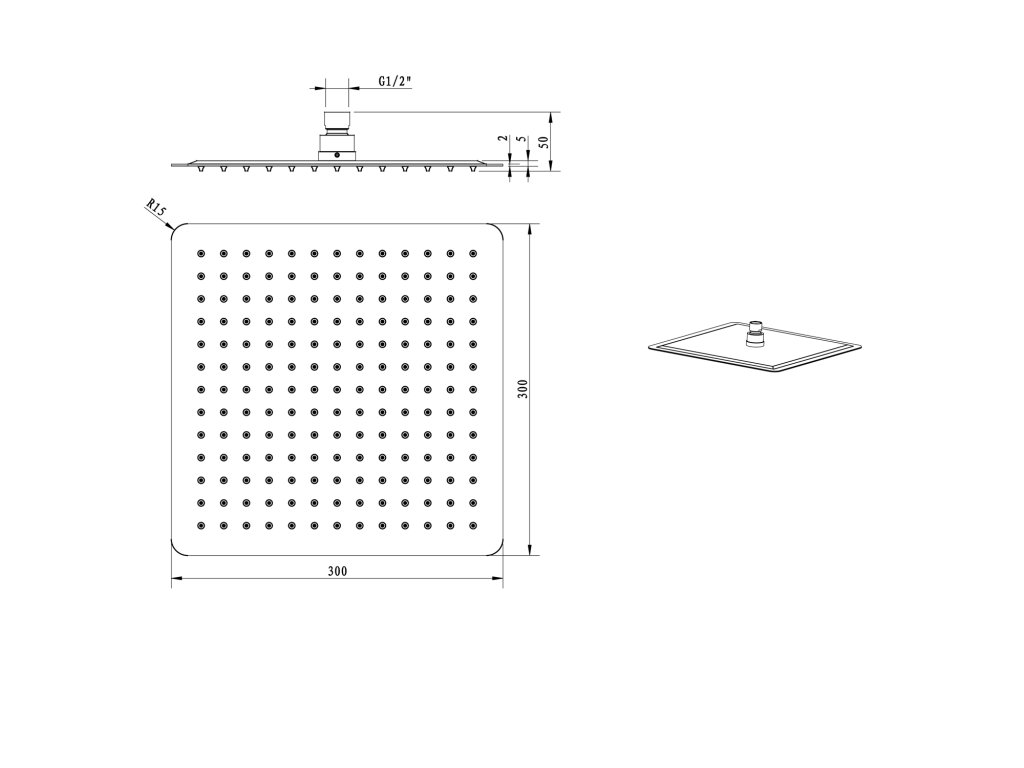 Sapho SLIM hlavová sprcha, 300x300mm, černá mat SL101