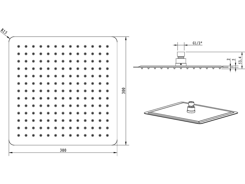 Sapho SLIM hlavová sprcha, 300x300mm, nerez lesk MS563