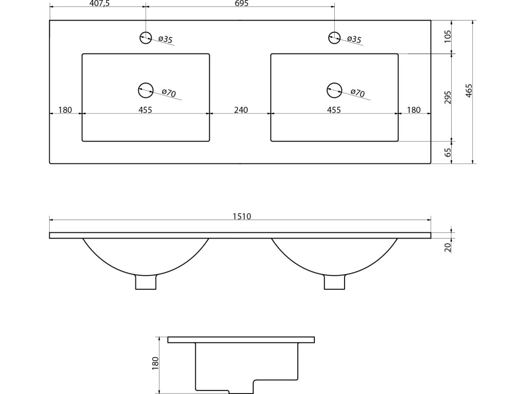 Sapho SLIM keramické dvojumyvadlo, nábytkové, 150x46cm, bílá 1601-150