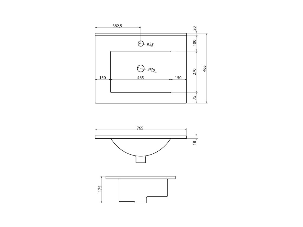 Sapho SLIM keramické umyvadlo, nábytkové, 76x46, 5cm, bílá 1601-75
