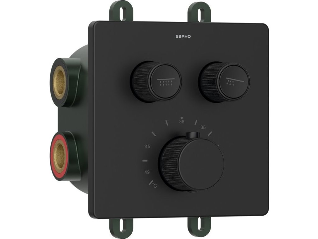 Sapho SMART SELECT podomítková sprchová termostatická baterie, box, 2 výstupy, černá mat RP042B