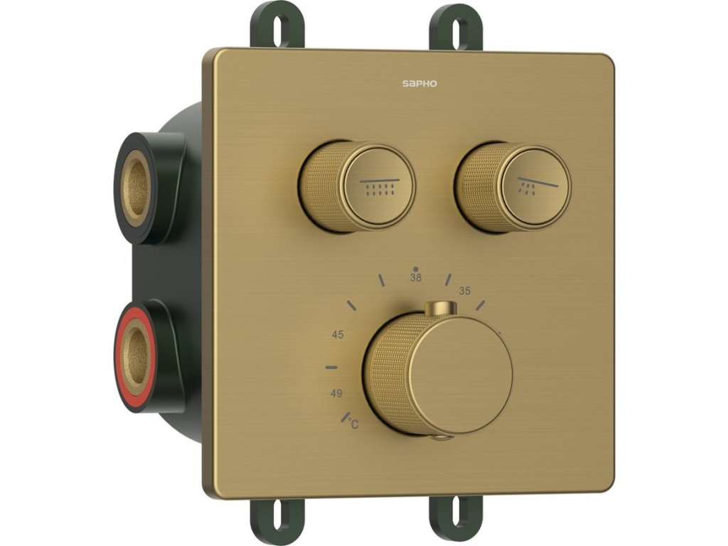 Sapho SMART SELECT podomítková sprchová termostatická baterie, box, 2 výstupy, zlato mat RP042GB