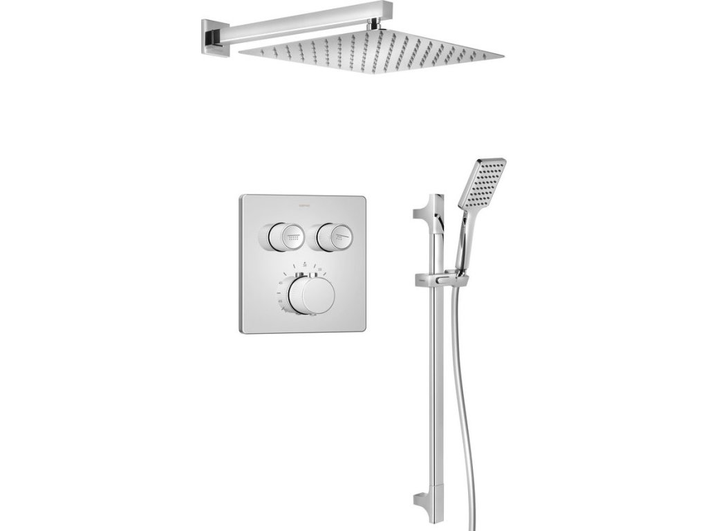 Sapho SMART SELECT podomítkový sprchový set s termostatickou baterií, 2 výstupy, posuvný držák sprchy, chrom RP042-02