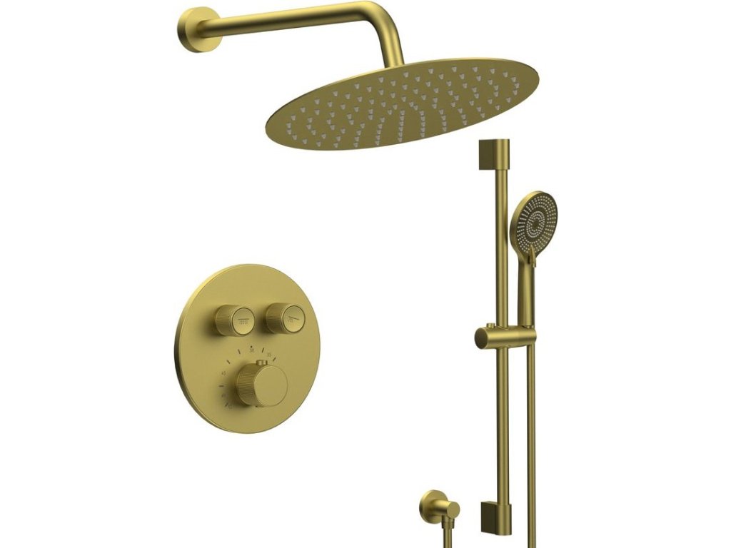 Sapho SMART SELECT podomítkový sprchový set s termostatickou baterií, 2 výstupy, posuvný držák sprchy, zlato mat RP032GB-02