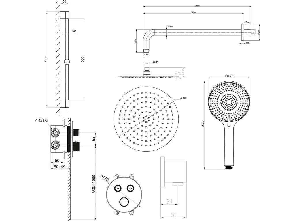 Funkce sprchy: | Déšť, Masáž, Déšť/Masáž |