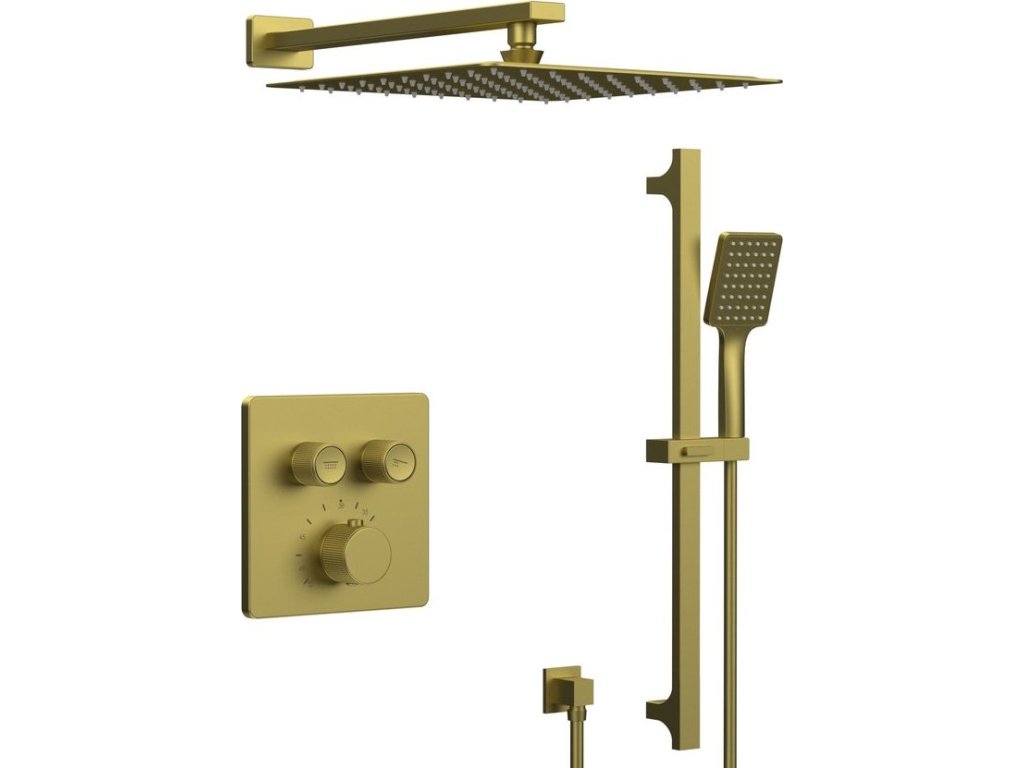Sapho SMART SELECT podomítkový sprchový set s termostatickou baterií, 2 výstupy, posuvný držák sprchy, zlato mat RP042GB-02