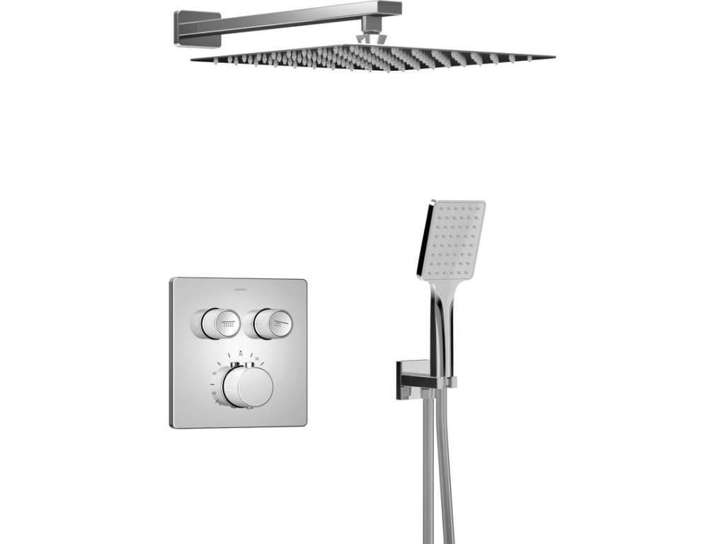 Sapho SMART SELECT podomítkový sprchový set s termostatickou baterií, 2 výstupy, vyústění, chrom RP042-01