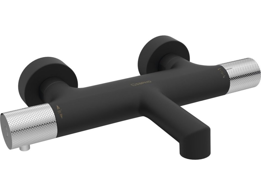 Sapho SOLARIS nástěnná vanová termostatická baterie, černá mat/chrom WD010BC