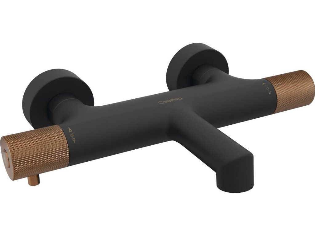 Sapho SOLARIS nástěnná vanová termostatická baterie, černá/měď mat WD010PG