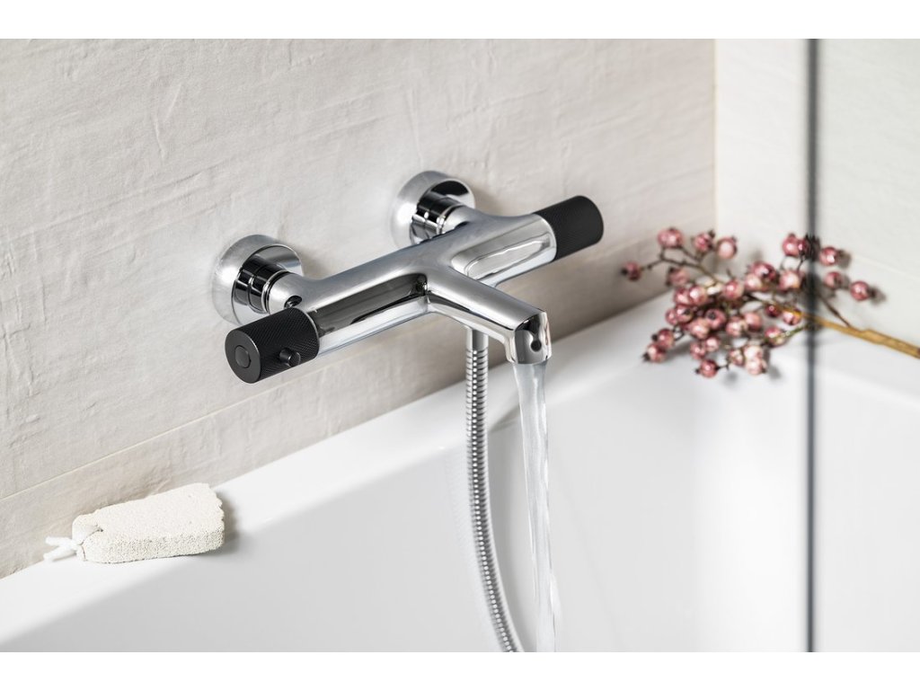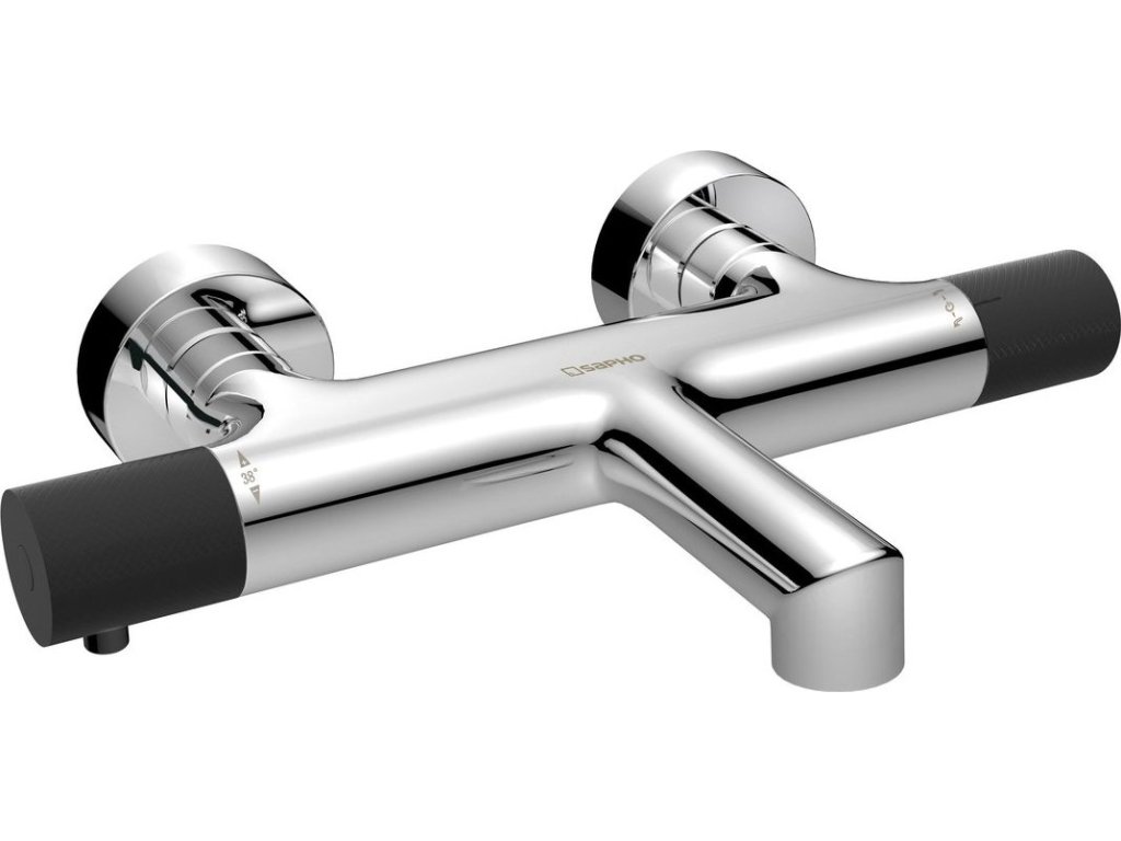 Sapho SOLARIS nástěnná vanová termostatická baterie, chrom/černá mat WD010CB